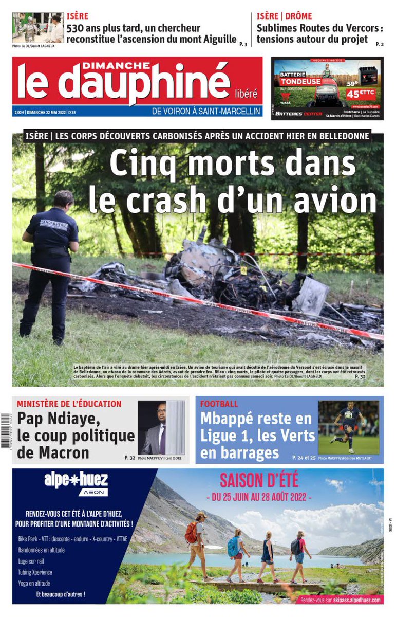 1 hour agolessentiel Cinq personnes dont deux enfants sont mortes ce samedi 21 mai dans le crash dun avion de tourisme en Isère. 3 hours agoLe crash dun avion de tourisme ce samedi 21 mai dans le massif de Belledonne a fait cinq morts. Un avion de tourisme a été victime dun crash ce samedi 20 mai dans le massif de Belledonne sur la.